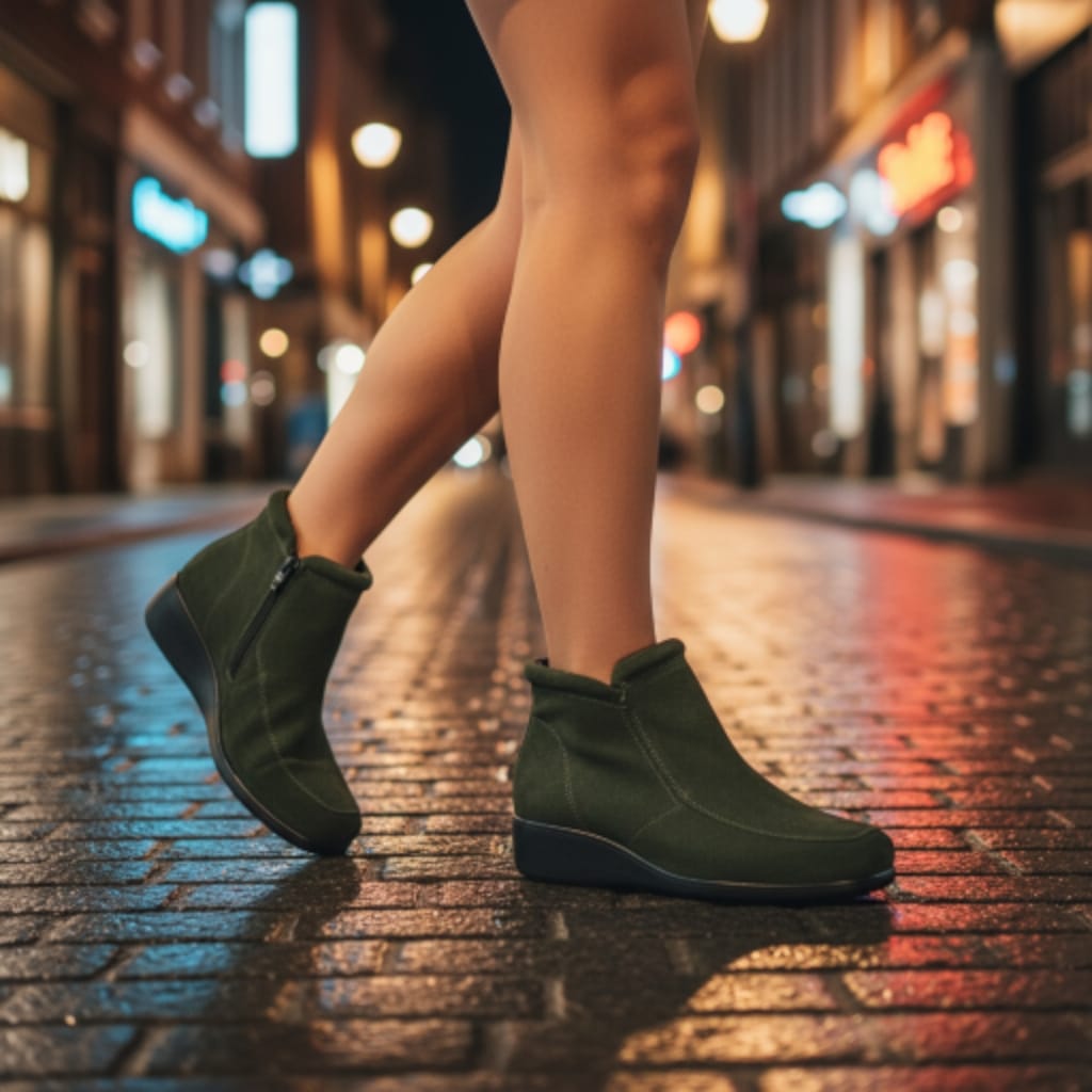 Stivaletto in morbido camoscio con doppia lampo laterale, ideale per chi ricerca praticità e comfort. La pianta larga accoglie il piede senza costrizioni, mentre la predisposizione per plantari ortopedici lo rende la scelta perfetta per chi necessita di supporto personalizzato. Il fondo antiscivolo garantisce stabilità in ogni situazione, e la struttura è specificamente pensata per piedi sensibili che richiedono delicatezza e protezione. Un capo versatile che unisce funzionalità e benessere quotidiano.
