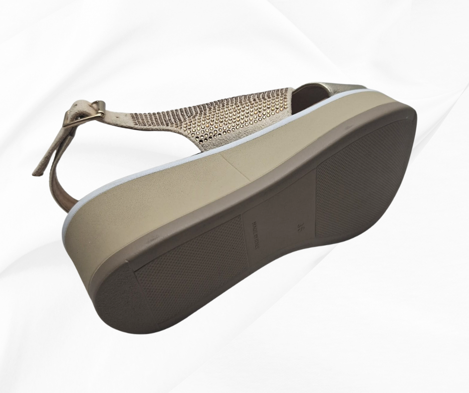 REPO 84228 PLATINO sandalo comodo donna in pelle con zeppa