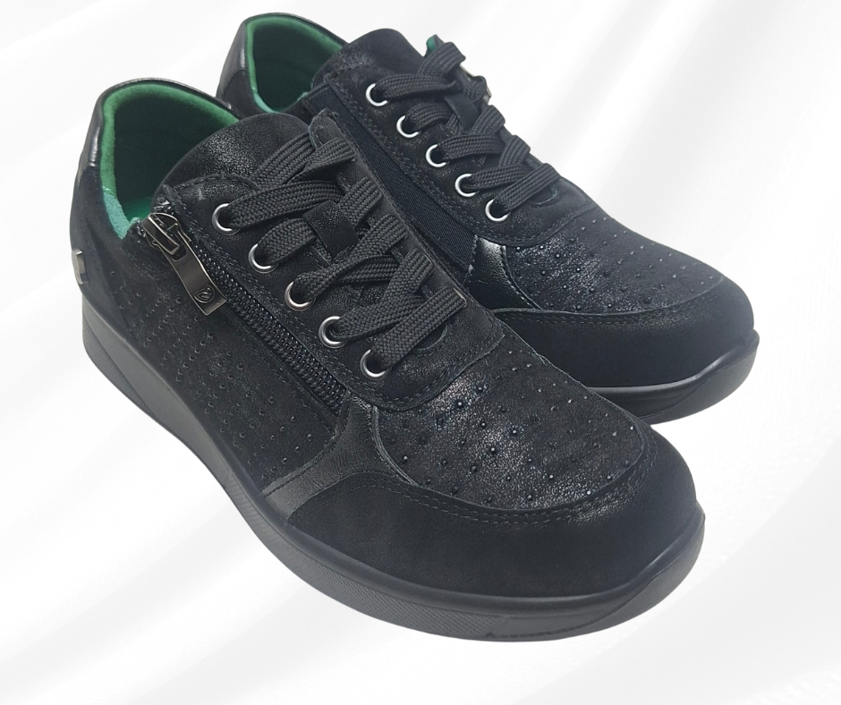 Scarpa con lacci e lampo e plantare in memory foam J63107 black